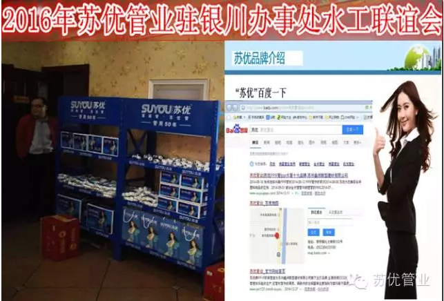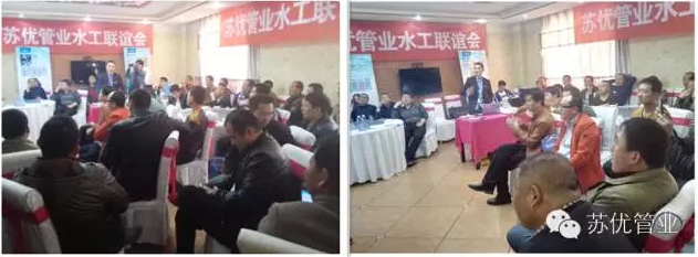 中国网讯,【苏优管业中国行】报道,苏优管业驻银川办事处盛典举办水工联谊会,展示PPR管十大品牌苏优产品的优质特点,协助银川办事处招商引资开发和维护经销商,把潜在客户变为现实客户,把现实客户变为满意客户。