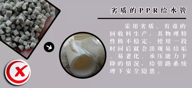 劣质的PPR给水管,往往采用各种各样的劣质回收料生产——有些甚至有毒,其分子结构和物理特性极不稳定,使用一段时间后就会出现易结垢、易老化、承压能力下降的情况,给管路系统埋下安全隐患,而且对人体健康危害极大。可以说,劣质管道是“水漫金山”、恶化邻里关系的罪魁祸首。