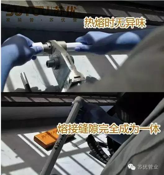 3、PPR焊接温度260±10 ℃。严禁过高温度焊接,因为高温度会使焊接头碳化其高分子材料变质,即使水压试验接口处也一时难以发现漏水现象。在近期或以后三个月甚至三年都会出现漏水。所以焊接温度是管道焊接质量的关键所在。当气温低于5℃时,应采取保护措施,调整焊接吸热时间。一般吸热时间延长50%。